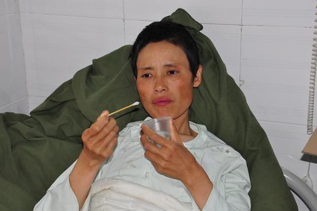 王前玲无法喝下一滴水,只能用棉签蘸水湿润干渴的嘴唇 本报讯 ( 特约记者 严克林 通讯员 伍源 彭雁南 )“我知道自己的时间不多了,每个人应该有一颗感恩的心。我希望能将自己的器官留给其他更需要的人。”这是5月23日,家住在英山县杨柳湾镇三门河村十四组46岁农妇王前玲主动联系到我们,表达了她要用捐献自己的器官这种方式来爱心回报社会,让社会上好心人关爱她的爱能传递得更远。 王前玲,她是英山县杨柳湾镇三门河村十四组的一位普通妇女,其娘家在温泉镇柳林河村。16岁的儿子目前就读于英山理工中专。初中毕业的王前玲因自己不甘心过着普通的农村生活,精明能干的她在农闲时候就充分发挥自己的聪明才智,做起了多种小买卖。她让丈夫樊玉川搞特色养殖,如养中华鲟、鳊鱼、土鸡等;自己加工英山的特色食品,如豆糕、油面、千岁粑(小孩周岁用)等等。这些产品全部由她加工好,然后拉到县城叫卖。无论炎炎烈日,还是刺骨寒风,王前玲总是骑着摩托车,骑行20公里到县城,在大街小巷叫卖。这样的日子持续了整整10年。夫妻俩日益苍老,家中的日子渐渐好转。2008年,家中盖起了3联3层的新式楼房,手头上还有一些积蓄,夫妻俩的干劲更足了。 正当夫妻俩立下雄心壮志,着手准备继续奋斗到儿子大学毕业时,不幸却降临了。2013年4月,王前玲感到自己的胃口很差,身体出现软弱无力,她自以为是自己劳累所致,根本没有放在心上,只是吃了一点感冒药,简单地应付一下。谁知自己渐渐地卧床不起,丈夫急了,强行带她到英山人民医院去做检查。等拿到检查单后,看到诊断结果上的“胃窦腺癌”几个字时,樊玉川顿时傻眼;王前玲抢过来一看,也如遭雷击,她半天没说出话来。随后,王前玲在医院里进行了胃切除手术,并进行了半年的化疗,病情有点好转。可是一年后,她的病情得到恶化,在武汉中南医院检查时,被医生确诊为胃窦腺癌转移。2014年9月,王前玲无奈地切除了自己的子宫及附件,治疗一直持续到2015年1月份。王前玲觉得这种治疗不仅倍受折磨,还拖累了家庭,于是她坚持回家。无奈之下,丈夫樊玉川只好带她回家住进杨柳湾卫生院进行保守治疗,每天依靠输液来维持生命。 她总想换种方式来战胜癌魔。在2013年5月,王前玲在英山县人民医院治疗时,常常陷入绝望当中,她心中有许多不甘。自己才46岁、正是做事的年龄,她还有很多计划没有完成,尤其是年少不懂事的儿子更是她心中最大的牵挂。 在绝望过后,她想到人死埋葬后,身体会渐渐腐朽,那样的死毫无意义;如果能把有用的器官捐献给有需要的人,比如眼角膜、心脏、肝脏、肾脏等,以这样的方式在这世上让部分器官重生,那样的话,她不就战胜了癌症病魔吗?于是,王前玲就向医生打听自愿捐献器官的情况,从而立下了死后捐献器官的决心。 她委托好友,表示自己坚持捐献器官,她要用爱心来回报这个社会。今年5月23日下午,王前玲委托她的好友胡桂枝和陈兵,帮她联系如何签订器官捐献协议。对此,丈夫樊玉川不忍心妻子这样做,他表示坚决不同意,王前玲就反复做他的思想工作,樊玉川无奈之下有满足她的心愿。胡桂枝和陈兵没接触过这样的事,最后联系到我们。 我们随即赶到杨柳湾镇卫生院,在二楼病房里见到了瘦得变形的王前玲。虽然无法喝下一滴水,只能用棉签蘸水湿润干渴的嘴唇。她苍白干枯的脸孔上,一双黑白分明的大眼睛却透出一股坚强。她说:“她捐器官,不是为了钱,而是为了爱,别人爱我,我也爱别人。现在我唯一的心愿就是用我的有用的器官帮助更需要帮助的人。