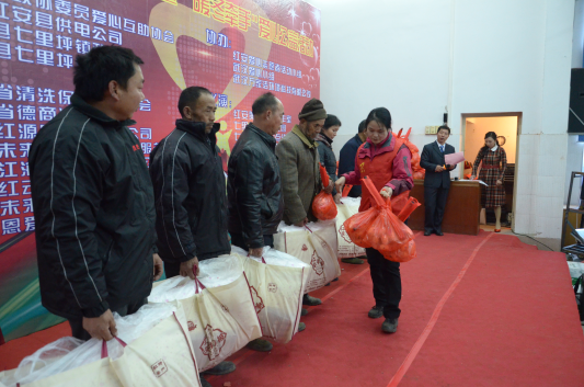 据了解,这次活动由红安县政协委员爱心互助协会、红安供电公司、七里坪镇政府等单位主办,红安爱心志愿者活动小组、武汉爱心小组、武汉万家洁环境科技有限公司、省清洗保洁行业协会、省德商汇等单位协办及赞助。活动共向该镇31位孤寡老人和41位特困学生,捐赠了总价值87152元的过冬物资及现金。